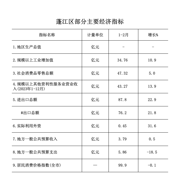 2024年1-2月蓬江區(qū)經(jīng)濟運行簡況