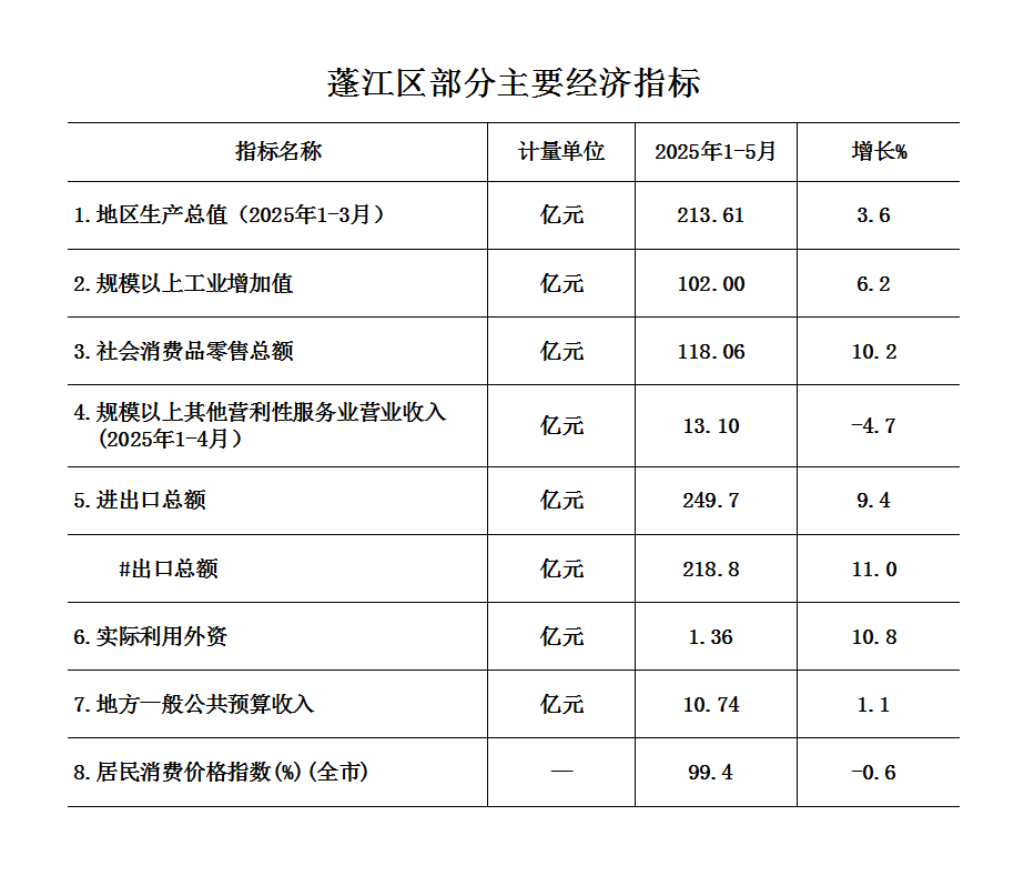 2025年1-5月蓬江區經濟運行簡況