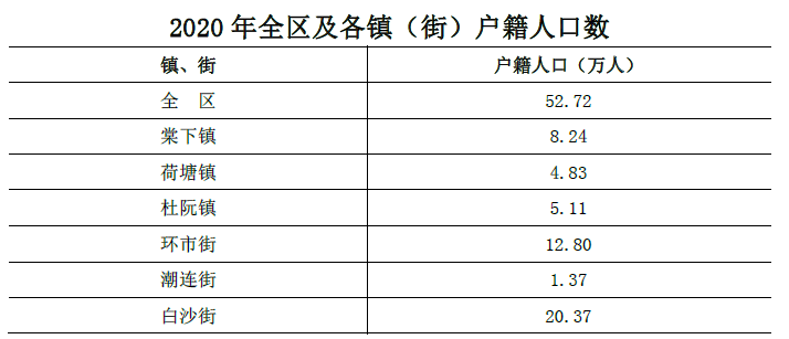 全區年末戶籍總人口52.72萬人,其中:男性人口25.76萬人;女性人口26.96萬人。
