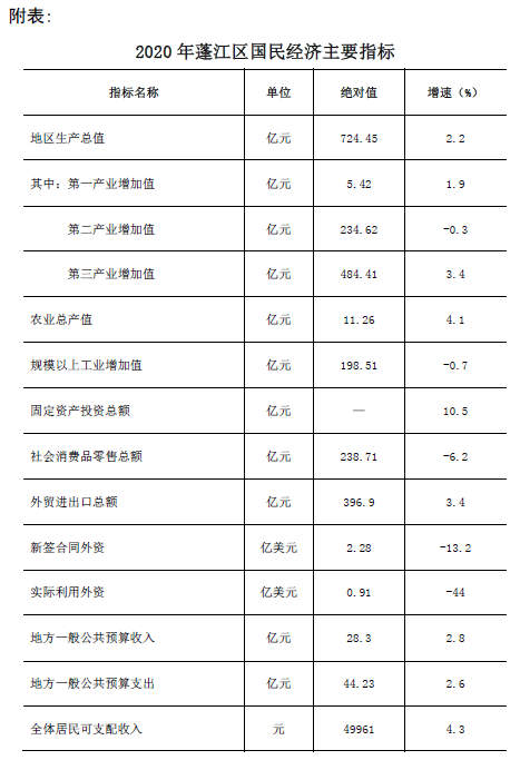 2020年江門市蓬江區國民經濟和社會發展統計公報