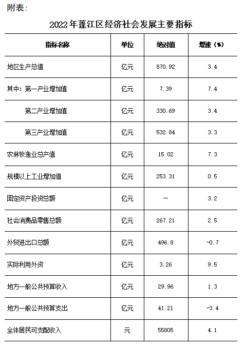 2022年江門市蓬江區國民經濟和社會發展統計公報